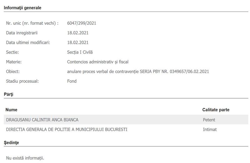 Acțiunea în contencios a fost depusă de Bianca Drăgușanu joi dimineața, la Judecătoria Sectorului 1 și vizează anularea unui proces verbal de contravenție din 6 februarie 2021. A fost seara în care poliția a luat cu asalt un club din zona Herăstrău în care mai multe vedete petreceau și au împrățit amenzi în stânga și-n dreapta. Printre VIP-urile prezente la eveniment se numărau Antonia, Alex Velea, Puya sau Adrian Minune.